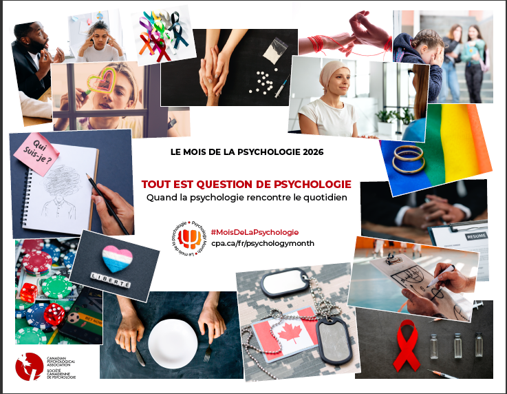 Chaque année, en février, on célèbre le Mois de la psychologie pour souligner les contributions des psychologues canadiens et expliquer aux Canadiens comment la psychologie aide les gens à vivre une vie saine et heureuse, les collectivités à s’épanouir, les employeurs à créer de meilleurs milieux de travail et les gouvernements à élaborer des politiques efficaces.